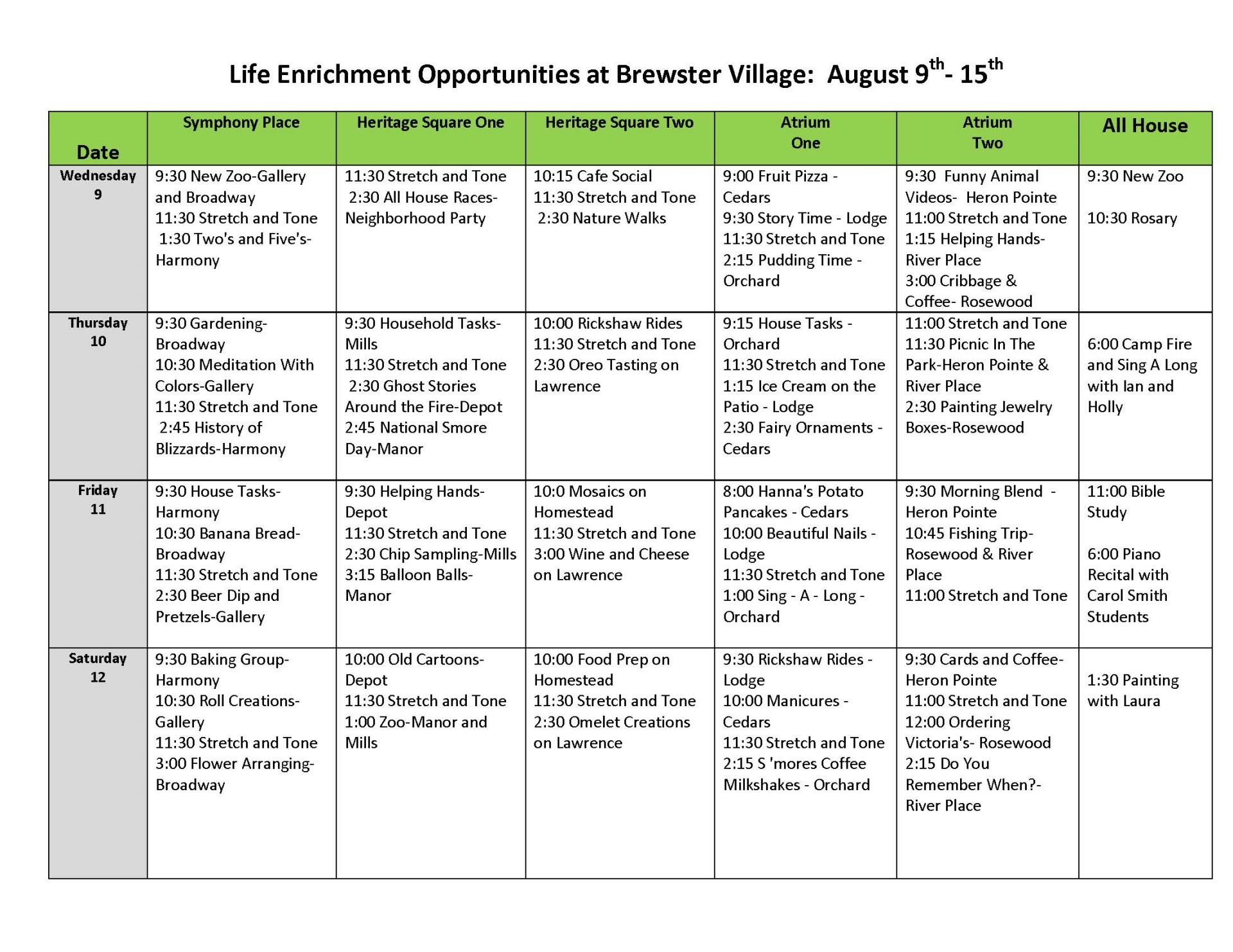 Life Enrichment August 9-15