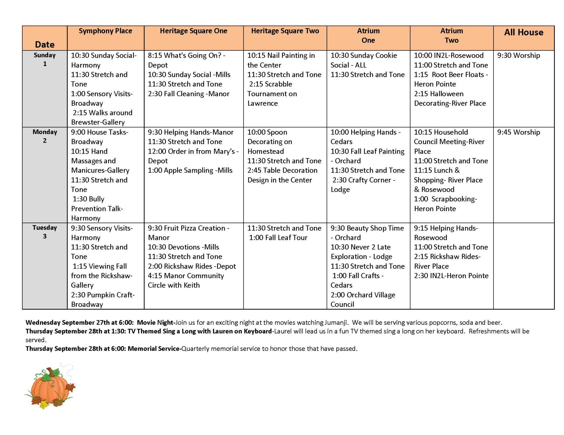 Life Enrichment September 27-October 3