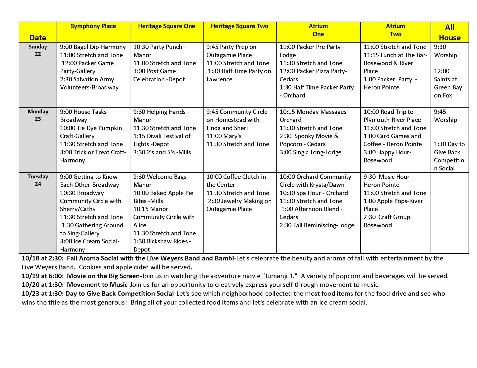 Life Enrichment October 18-24