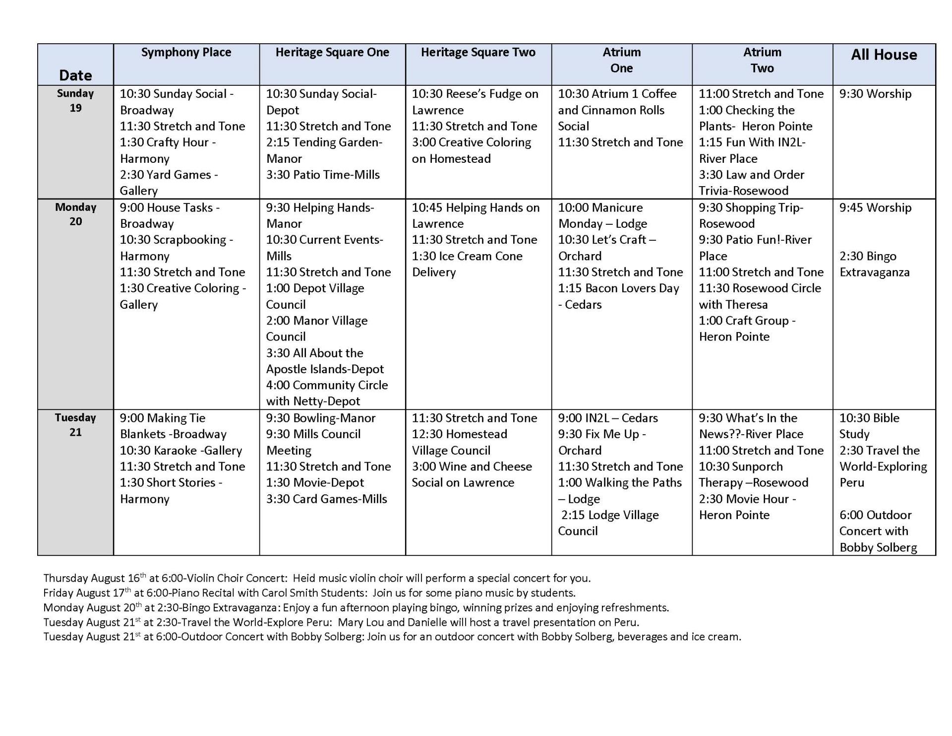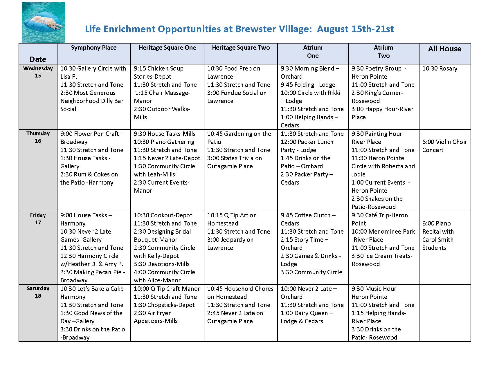 Life Enrichment August 15-21