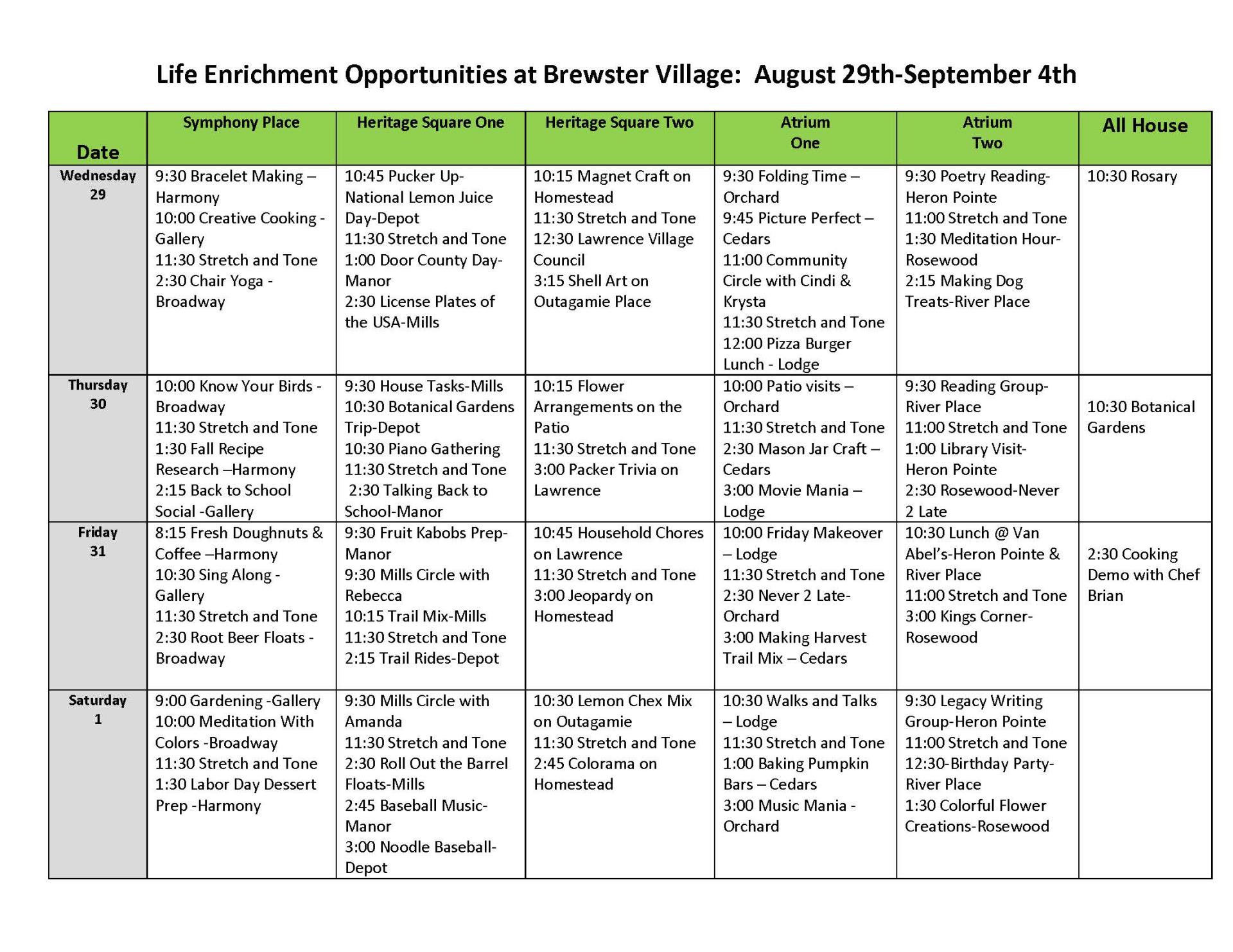 Life Enrichment August 29-September 4