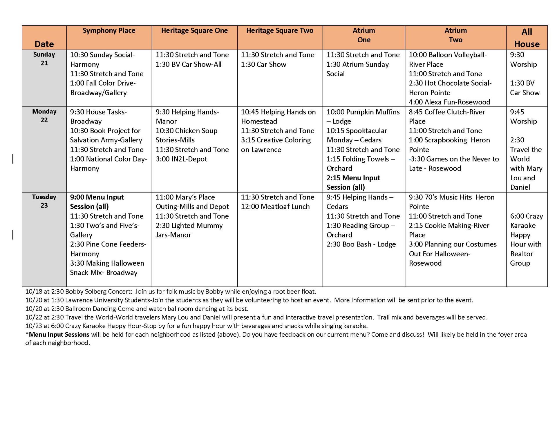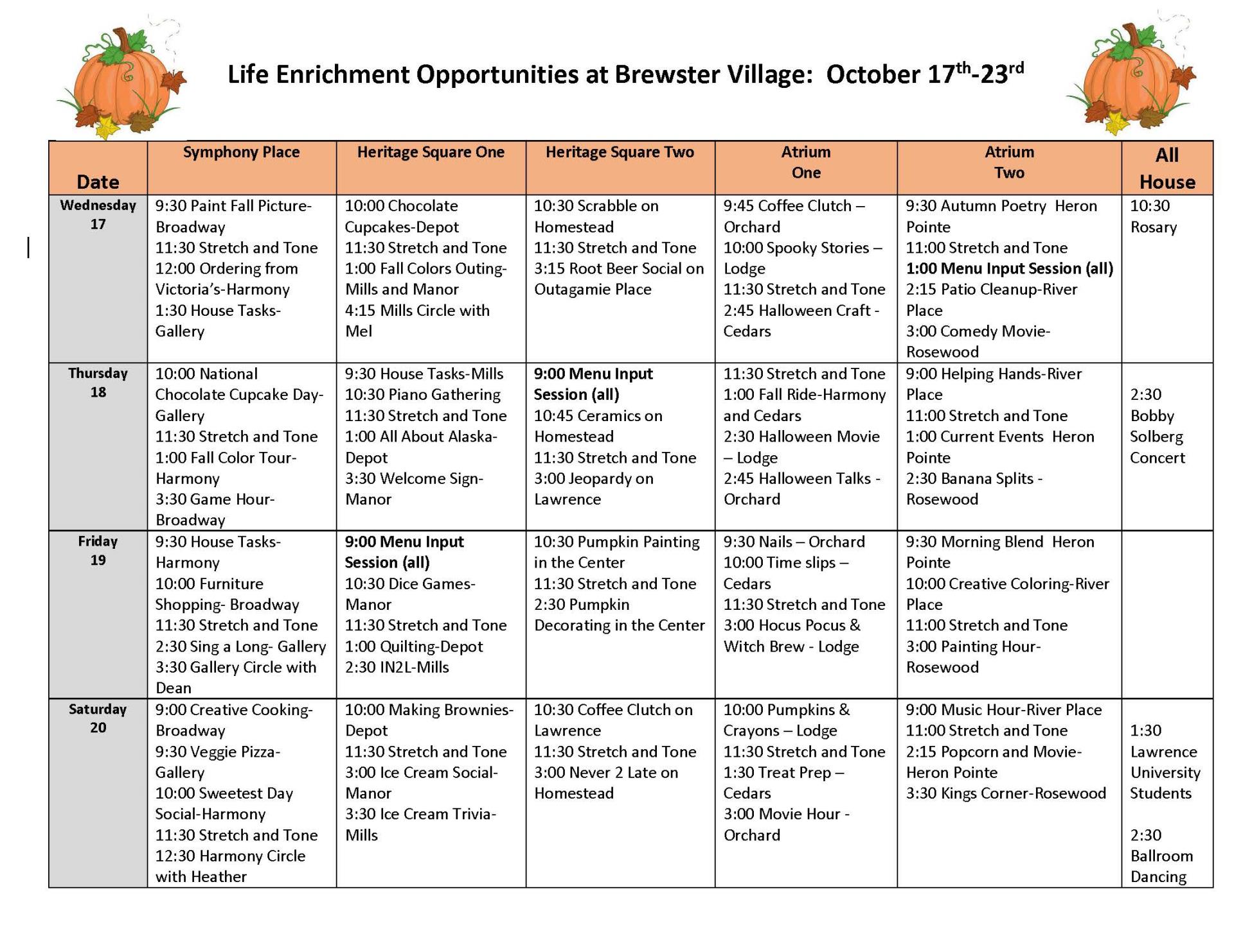 Life Enrichment October 17-23