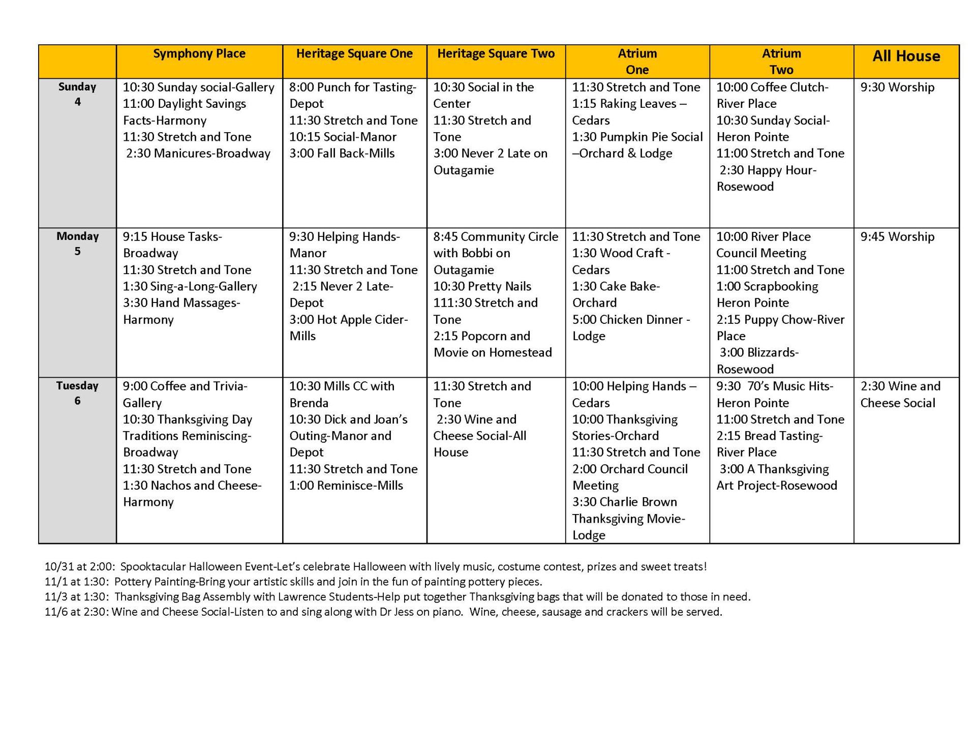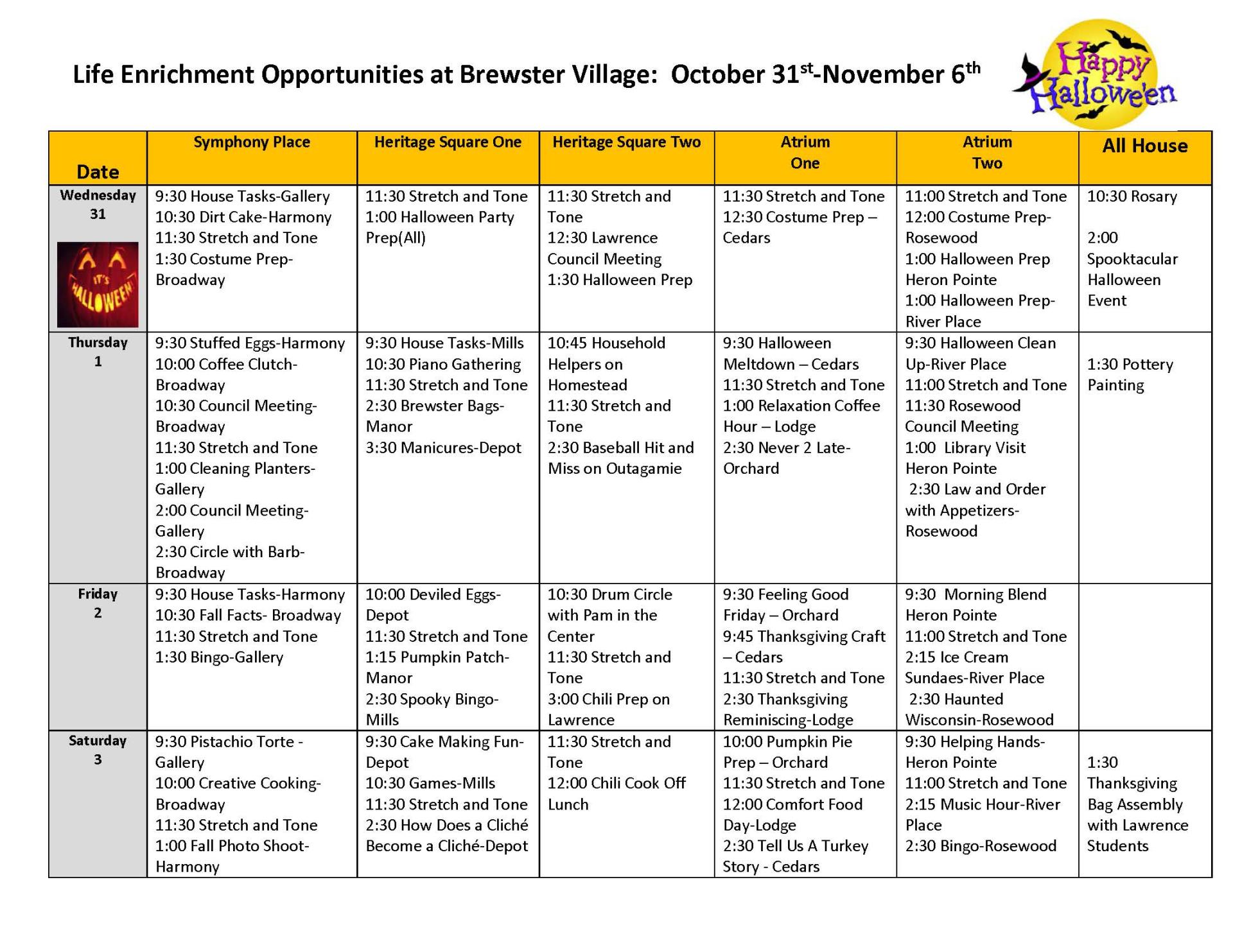 Life Enrichment October 31-November 6