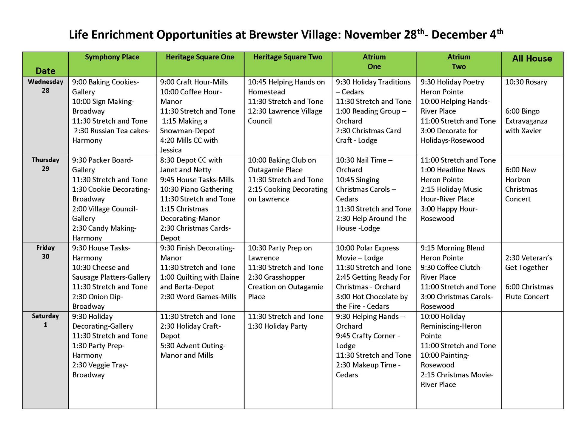Life Enrichment November 28-December 4