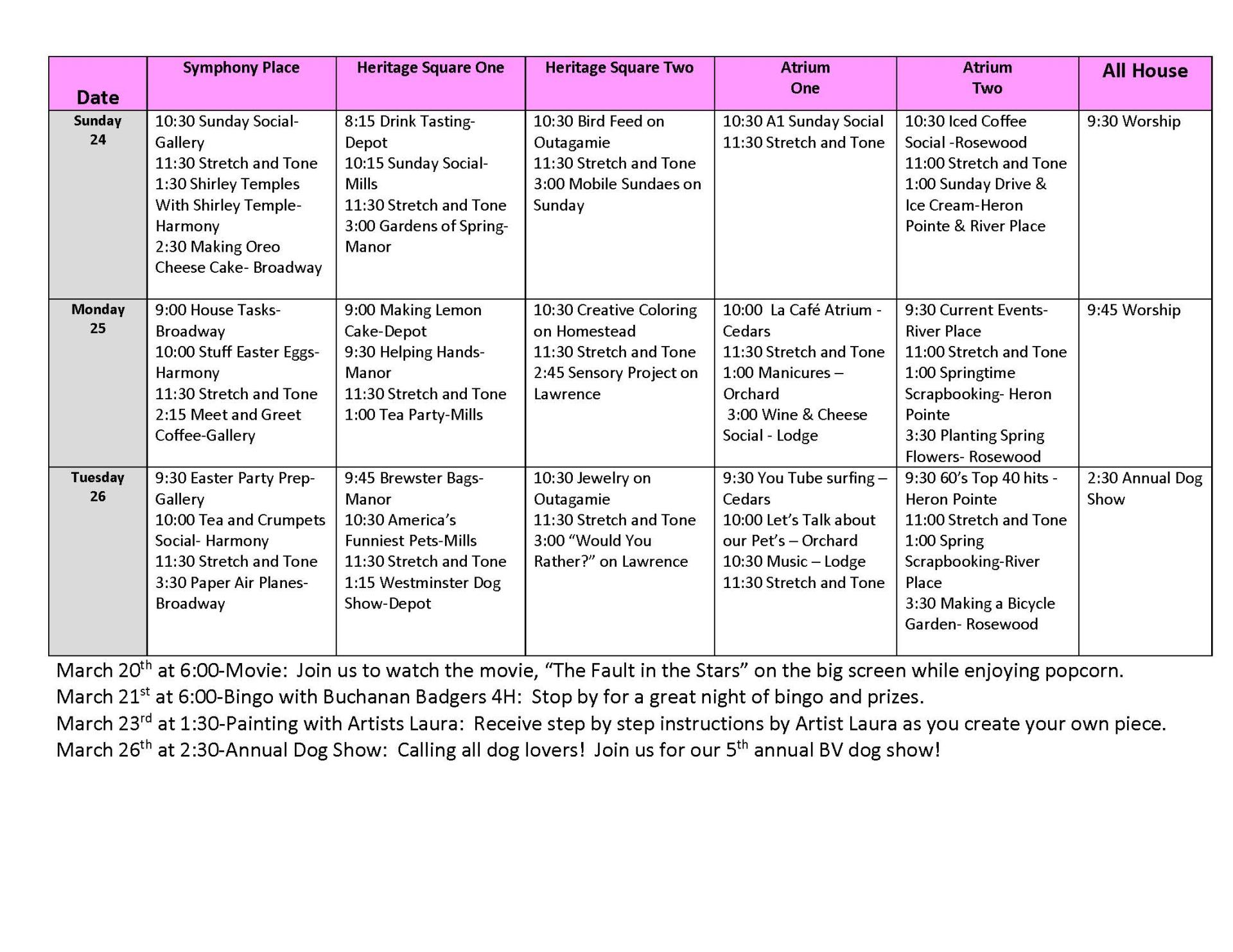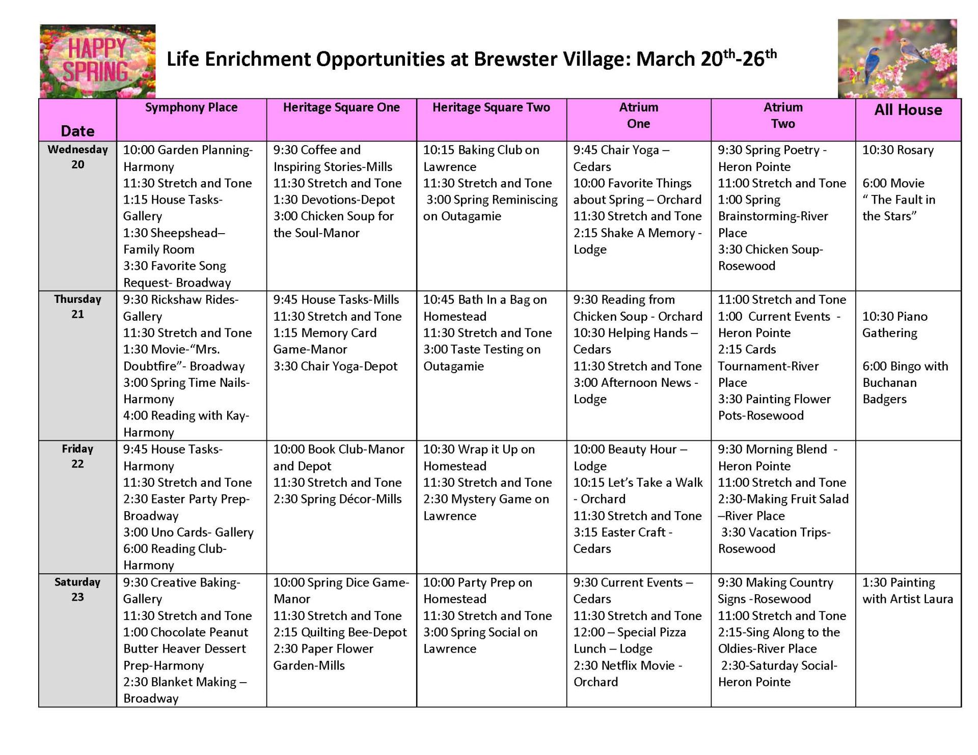 Life Enrichment March 20-26